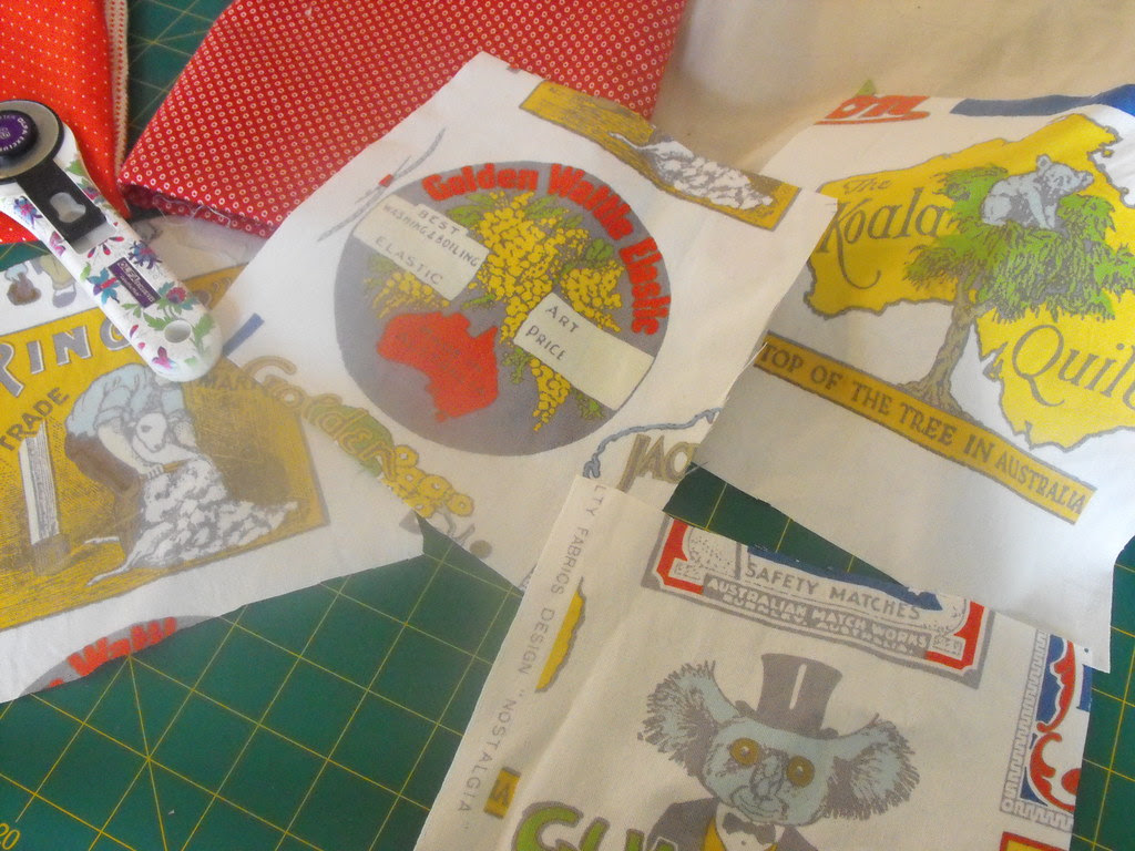 Using what was once my mother's table cloth (not any more - snip, snip!) to make the two pot holders that are required for Amy's Pot holder Pass. I really, really hope my swap partner appreciates Australiana! I'm still trying to work out exactly where I am going with this - stand by!